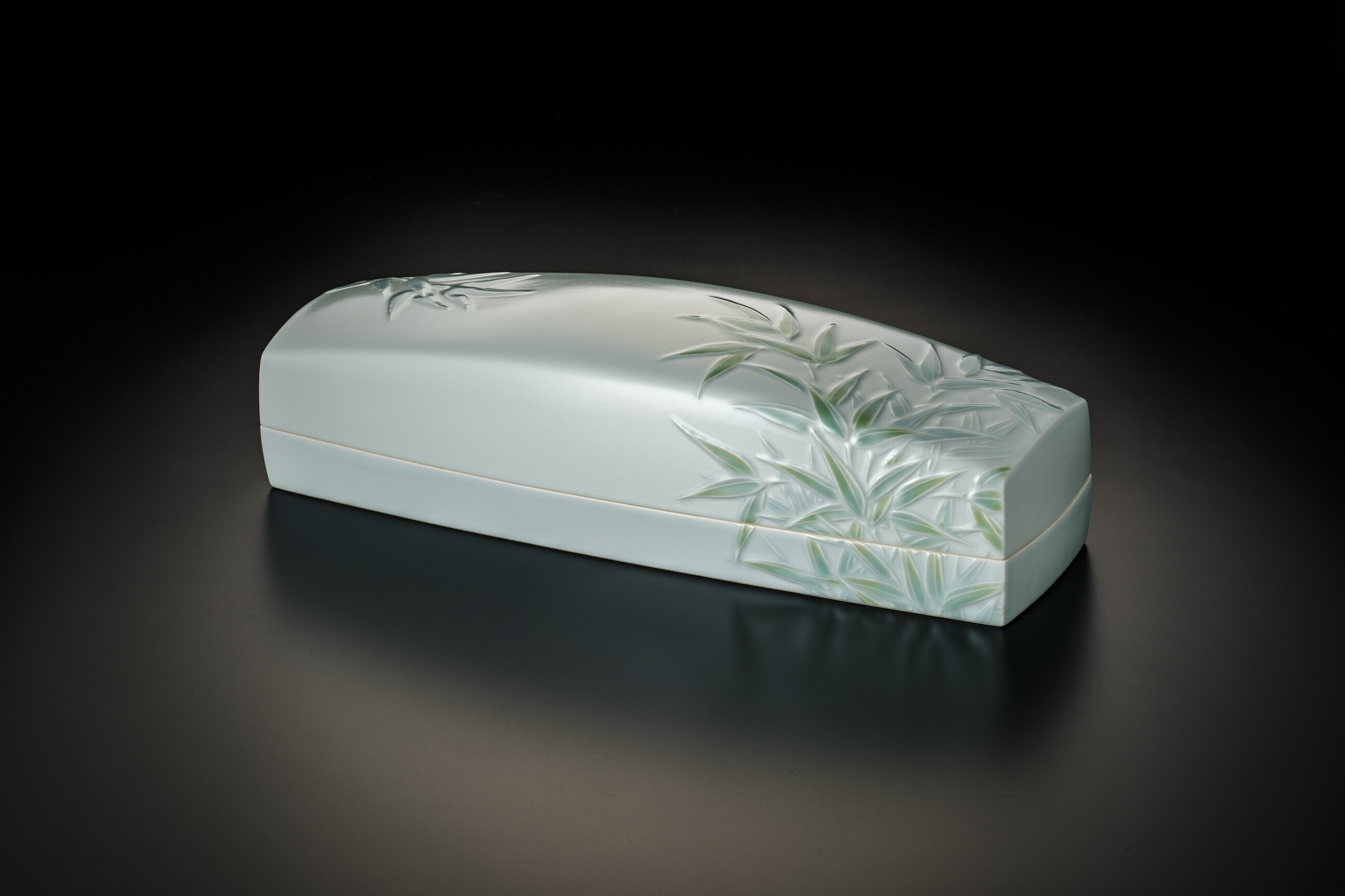 堆磁釉彩笹文陶筥