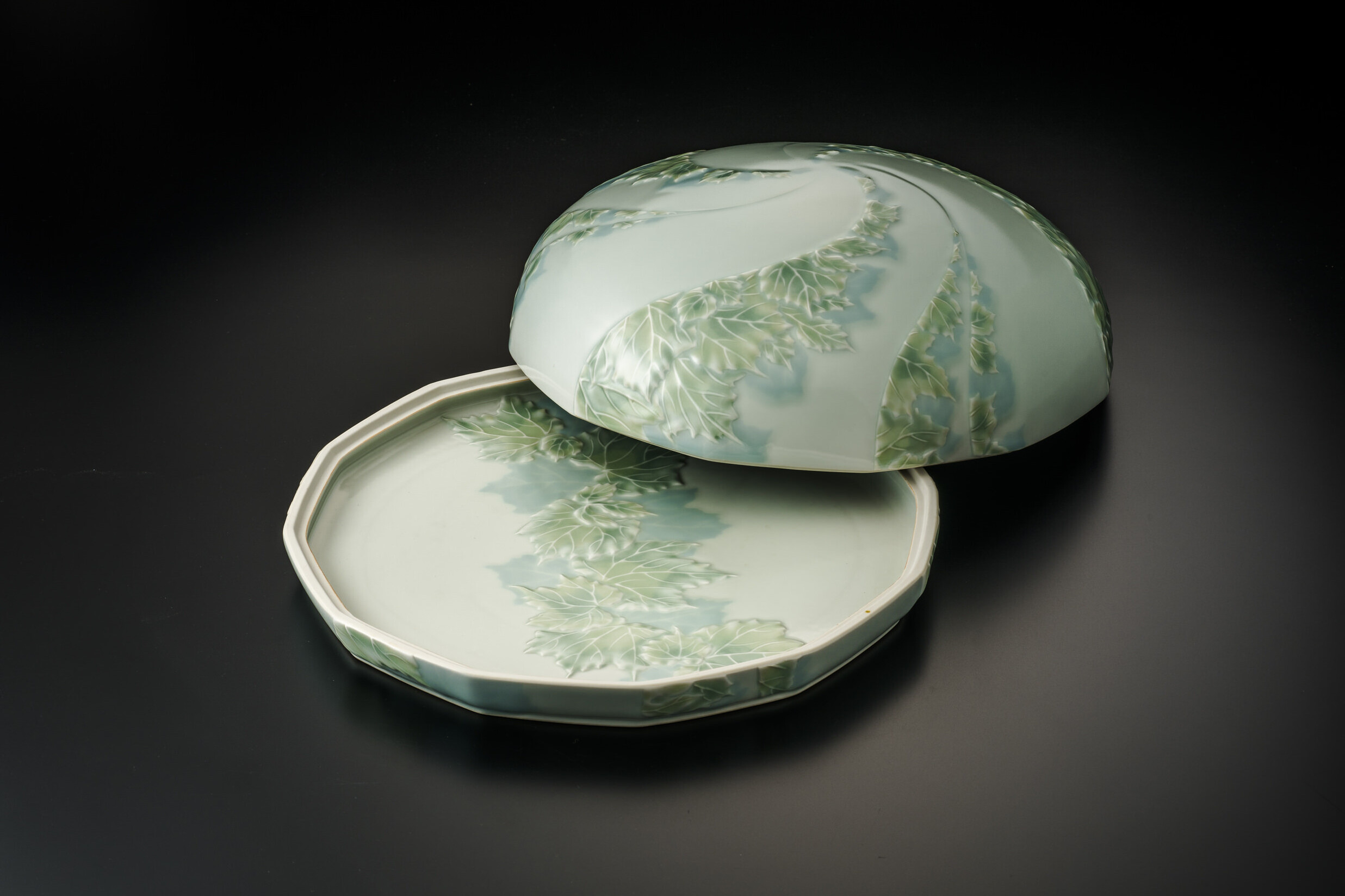 堆磁釉彩蔦文陶筥