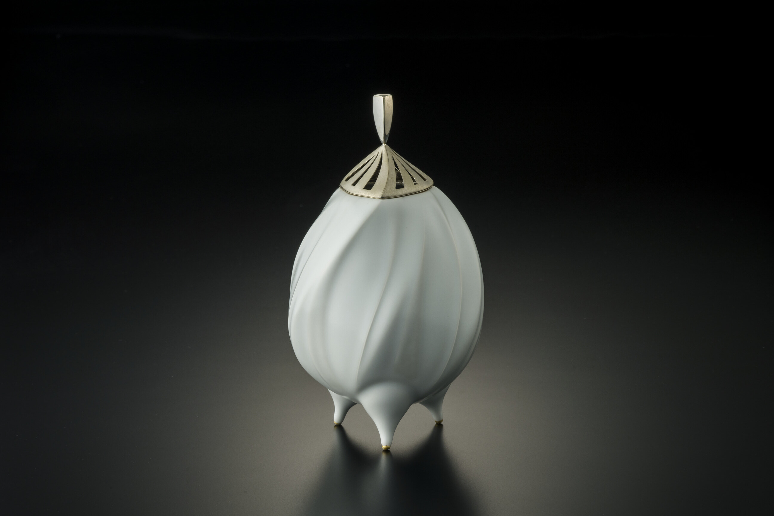 白磁堆磁線文香炉